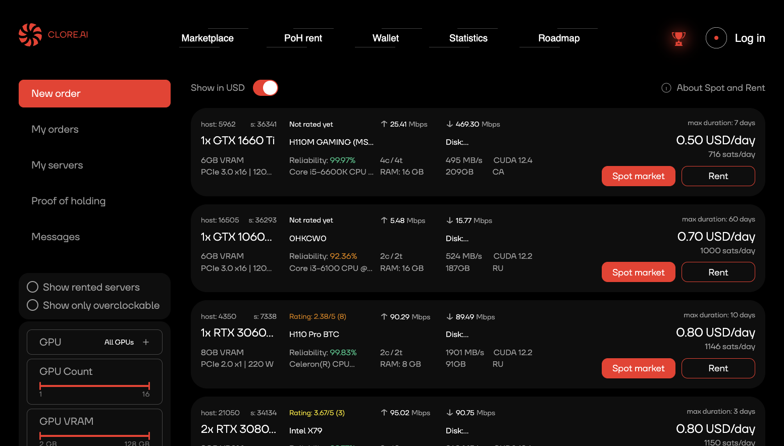 Here, we’ll be running an instance of quai-gpu-miner, the implementation of a Quai Network ProgPOW miner, on Clore.AI. Clore.AI is a cloud compute marketplace that provides access to a distributed network of GPU computining nodes from anywhere in the world.Requirements
