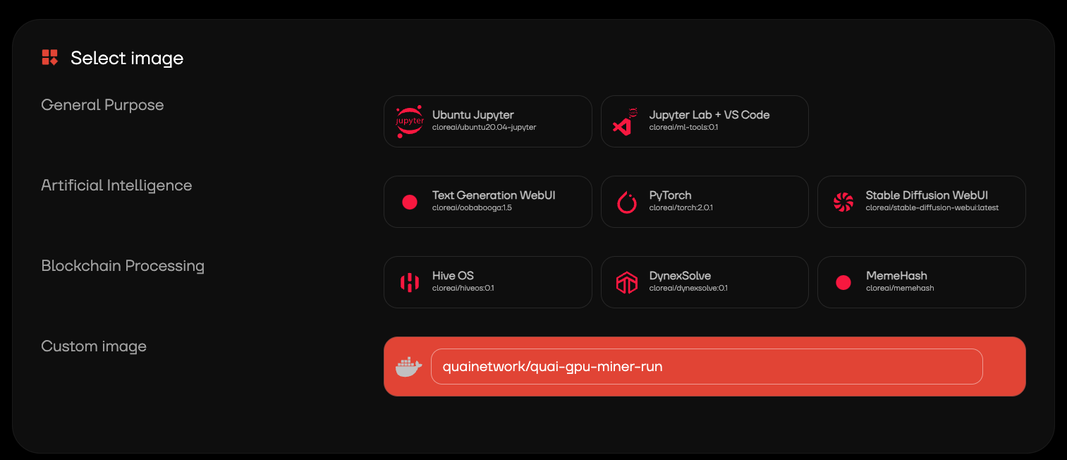 Rental. You’ll be taken to a configuration page where you’ll be able to configure your compute with quai-gpu-miner.