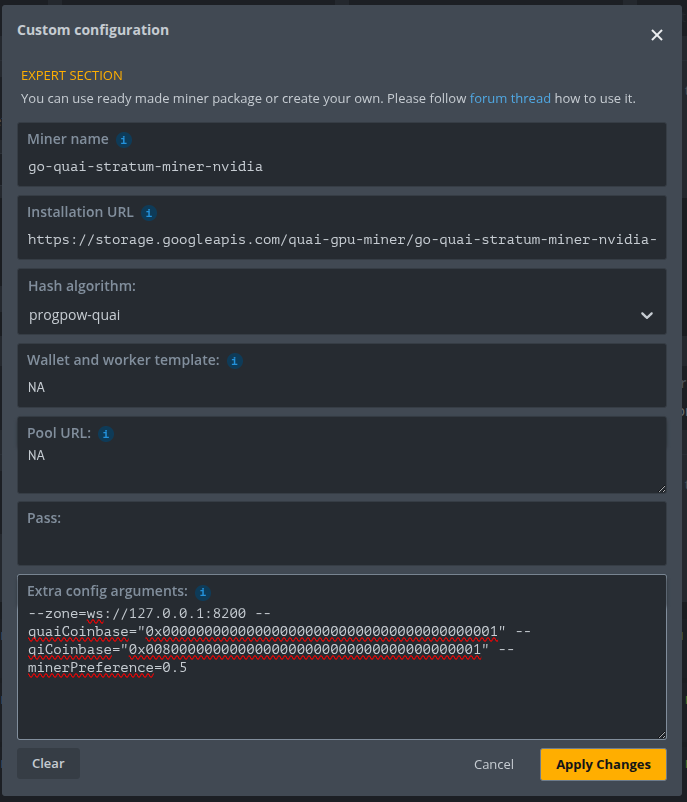 - minerPreference: This is the relative preference between Quai and Qi from 0 to 1.