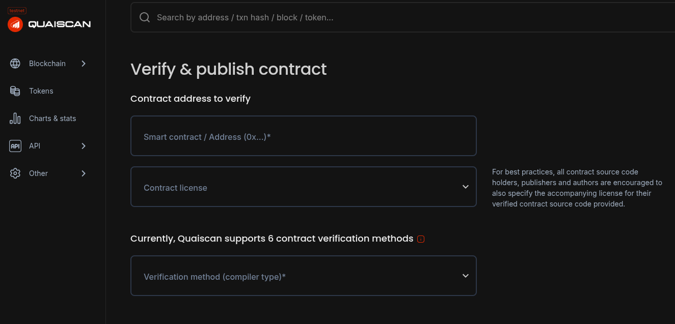 この記事では、Quai NetworkのブロックエクスプローラーQuaiscanでスマートコントラクトを検証する方法を説明します。前提条件