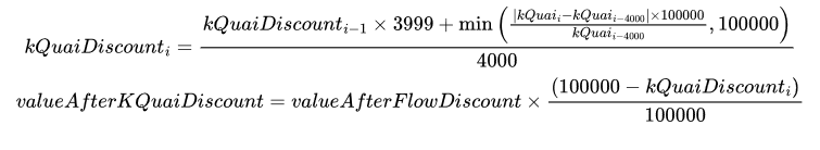 The conversion flow amount at block i, conversionFlowAmount_i, is an EMA of Quai conversion amounts, adjusted by two discounts: a cubic conversion flow discount and a K-Quai discount. It includes a minimum threshold: